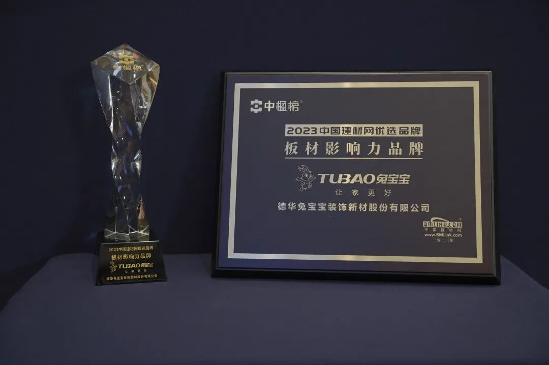 【概要描述】 近期,由建材网主办的共生共长 数智赋能·2023建材行业数智化发展大会暨中楹榜颁奖典礼在杭州完美落幕!本届大会为全面提升建材行业科技创新能力和智能化水平,实现建材行业安全发展进行交流,持续带动中小企业不断创新发展、驱动整个产业转型升级、推动经济高质量发展作用。 【中楹榜】建材网优选品牌颁奖典礼自今年已经连续举办十届,以行业专业媒体平台身份甄选出行业优秀标杆品牌。兔宝宝凭借出色的品牌实力、良好的市场口碑,从众多知名企业中脱颖而出,荣获“板材影响力品牌”称号,对于时代赋予的使命与责任,兔宝宝未负所期。