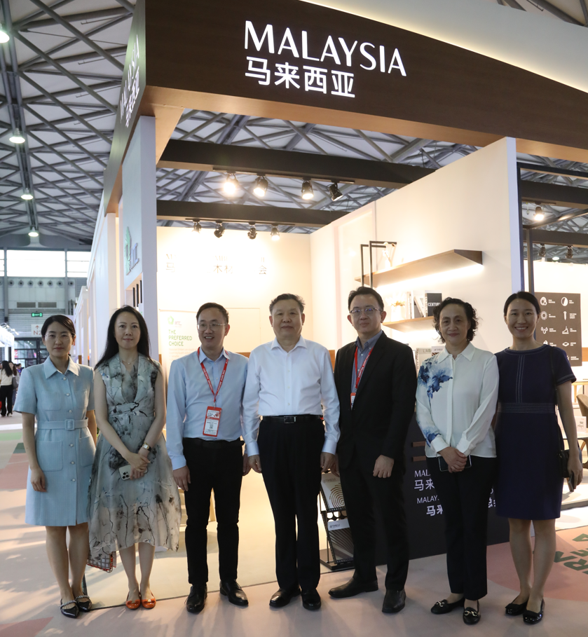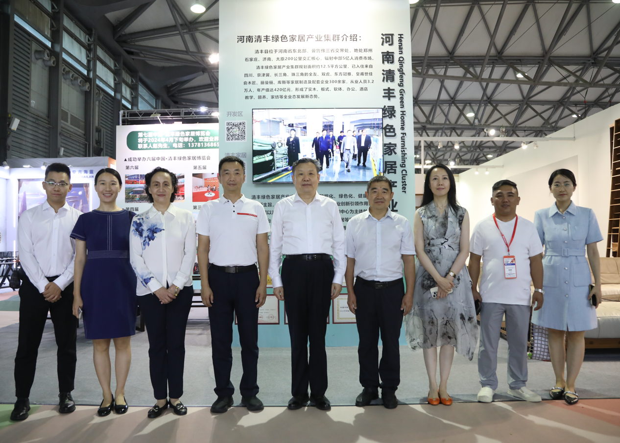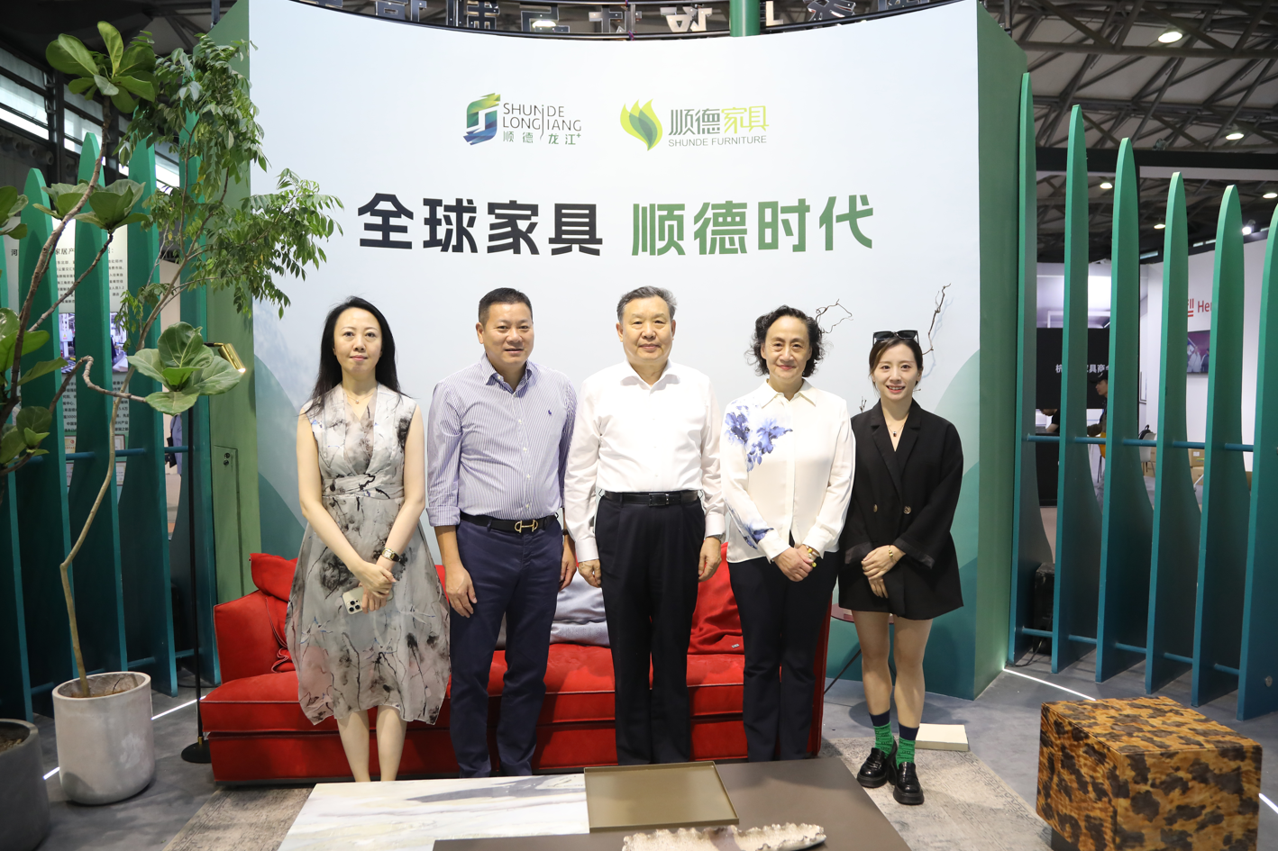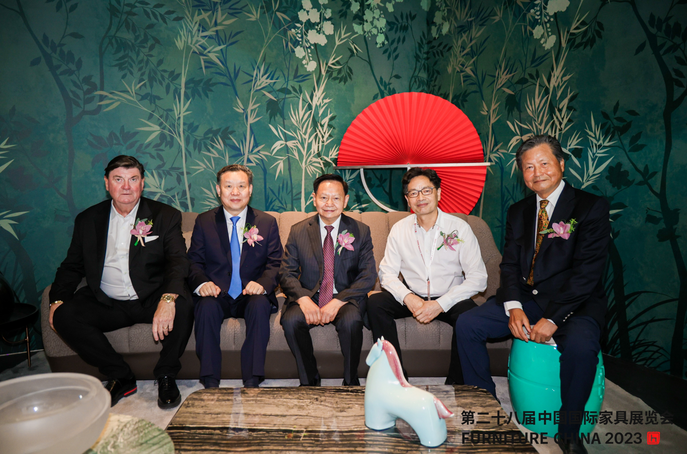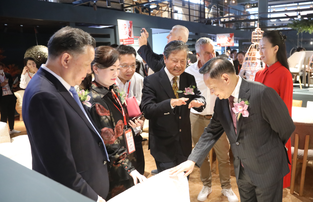 中国轻工业联合会会长张崇和,中国家具协会理事长徐祥楠,上海博华国际展览有限公司创始人、董事王明亮,中国家具协会副理事长张冰冰,中国家具协会副理事长兼秘书长屠祺,上海博华国际展览有限公司常务副总经理钟蓓红等领导嘉宾共同参观展会。