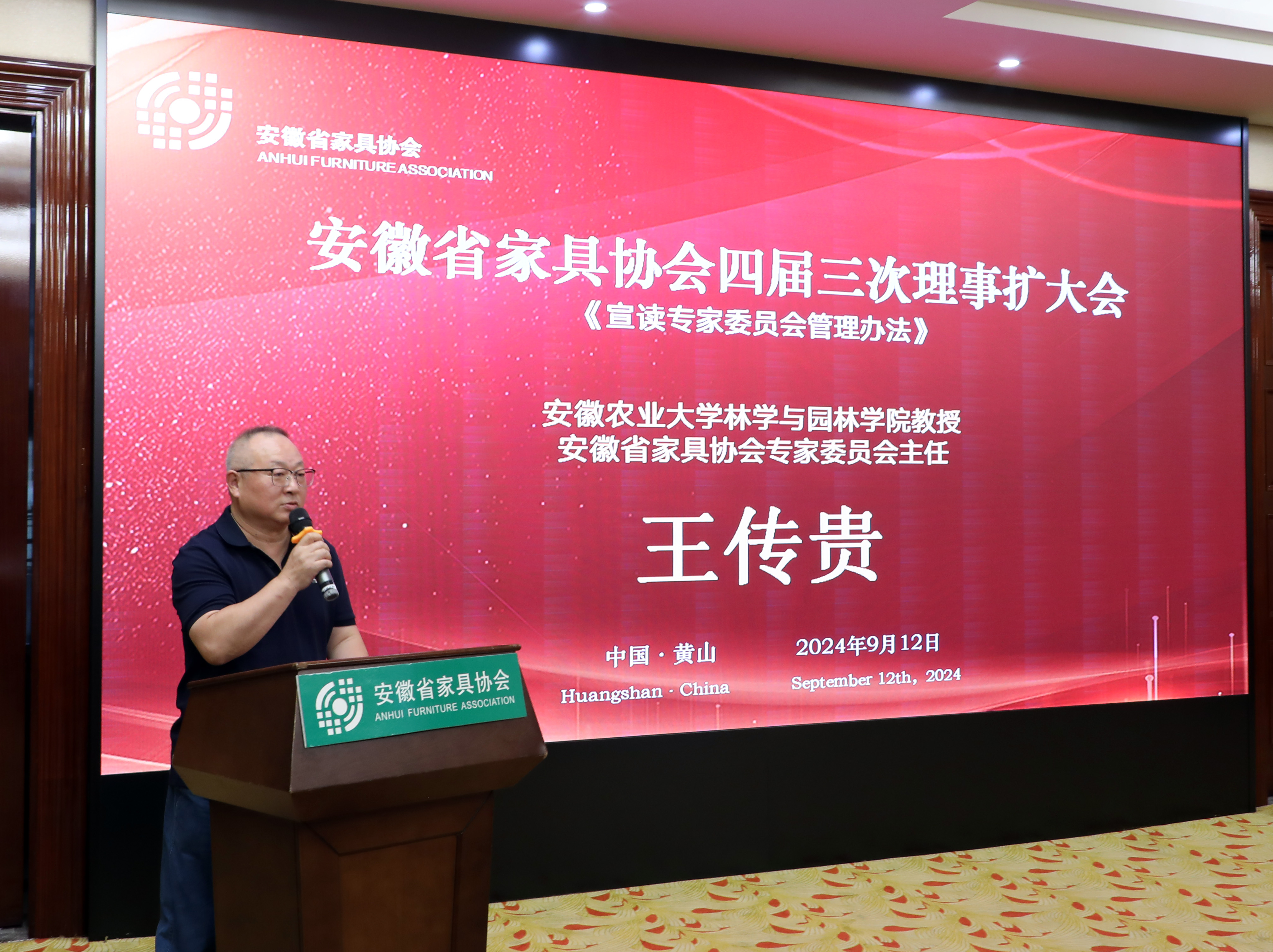 专家委员会主任、中国林学会竹藤利用分会教授王传贵对《安徽省家具协会专家委员会管理办法》进行了详细宣讲,强调了专家的主要工作内容、权利和义务,指出专家库的成立不仅为企业提供了一个资源丰富的服务平台,也为家具行业注入了新的活力。