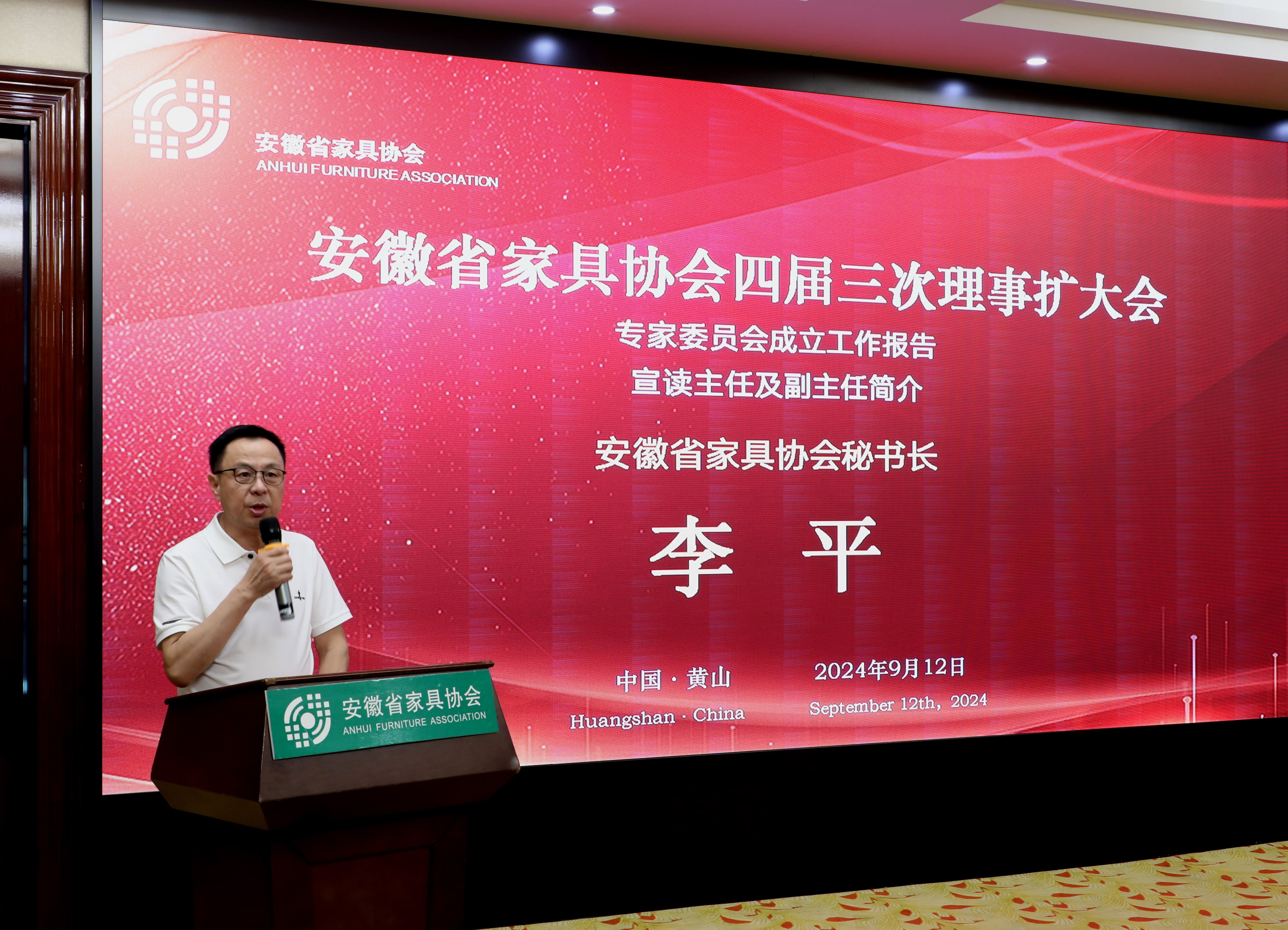 在安徽省家具行业迈向高标准、产业升级的关键时期,2024年6月30日省家协四届二次理事会议上,理事长张乃建提出了《关于成立省家协“专家库”议案的报告》。经过两个半月的精心筹备与严格选拔,2024年9月12日,安徽省家具协会四届三次理事会暨专家委员会成立大会在安徽省黄山市隆重召开。此次会议得到了黄山奥菲家具有限公司的鼎力支持与协助,省家协理事会及专家库成员近60人齐聚一堂。