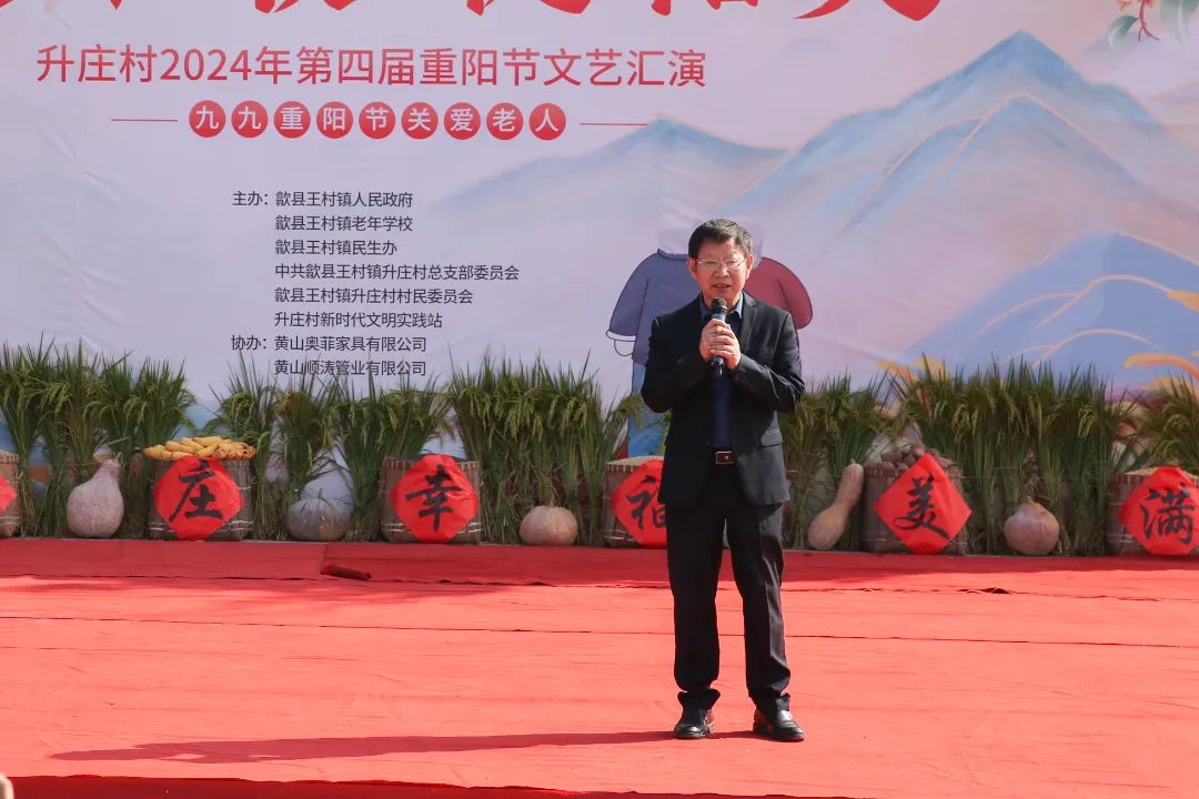 活动伊始,王村镇副书记程莉芬和奥菲家具董事长朱绳武先后发表了热情洋溢的致辞,表达了对丰收的庆贺以及对老人们的敬意、关怀与深深祝福。