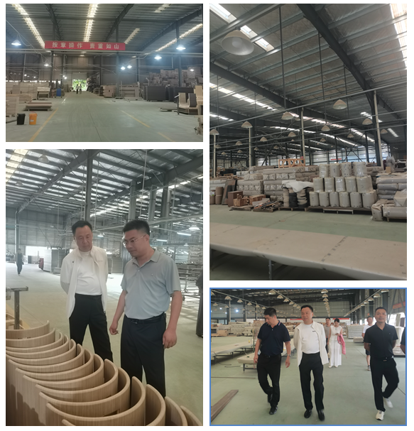 6月29日,应安徽省家具协会理事单位安徽省国林家具有限公司邀请,安徽省家具协会秘书长李平率6家省内家具企业负责人组成考察团,莅临该公司开展调研。该公司李强总携核心管理团队成员韩总、汤总、丁总全程陪同考察。