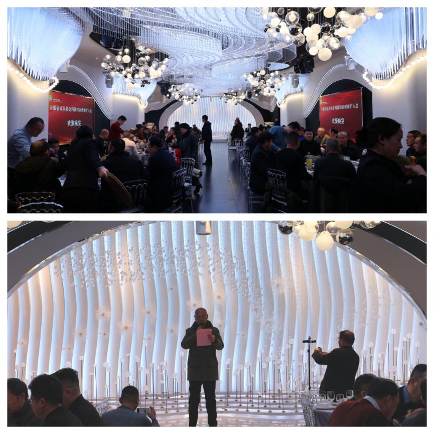 当晚,协会在金寨国际酒店举办了招待晚宴。与会代表们在轻松愉快的氛围中继续深入交流,畅叙友情,共话合作。晚宴上,协会副理事长单位、安徽腾辉商业运营管理有限公司的商管总监周武林先生代表赞助单位发表了热情洋溢的祝酒词。他不仅表达了对协会工作的大力支持,更在现场分享了其旗下项目“华东建材城”最新的招商优惠政策,他们向所有家协的会员单位推出首年"零租金"入驻的特别优惠政策。为有意向拓展渠道、布局市场的家具企业带来了实实在在的利好信息,将晚宴变成了一个资源对接的延伸平台。