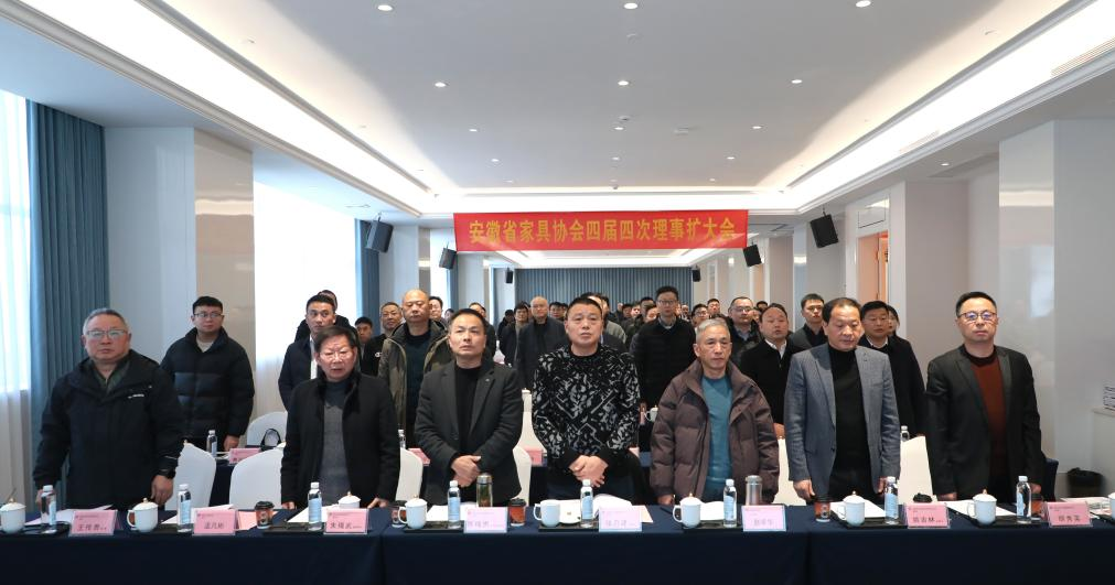 2025年12月27日至28日,安徽省家具协会四届四次理事扩大会在素有“红军摇篮、将军故乡”之称的六安市金寨县隆重举行并圆满落幕。在庄严的国歌声中,本次盛会正式拉开帷幕。会议旨在总结过去、谋划未来,凝聚行业共识,共商发展大计,来自全省家具产业链上下游的理事单位代表、会员单位代表、专家委员会成员及友好协会嘉宾等100多人齐聚一堂,涵盖80余家单位共同参与了这场年度盛会。
