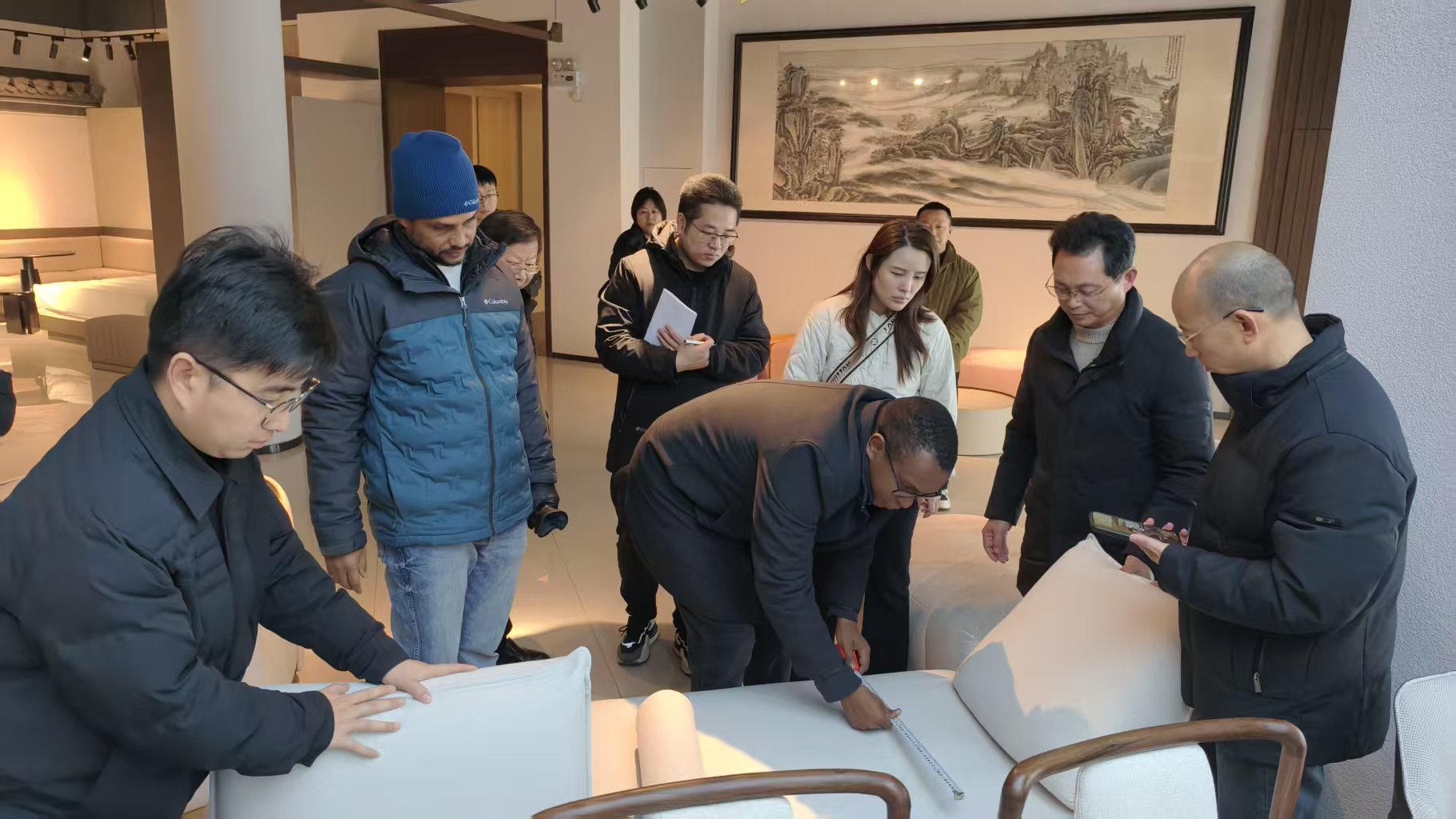第三站—黄山奥菲家具有限公司:在奥菲家具展厅,代表团的目光聚焦在工艺精湛、可自由组合的高端活动家具上。外宾对休闲椅的人体工学曲线、沙发的填充材质与支撑结构、实木餐桌的拼花工艺与稳定性等细节进行了询问。奥菲家具以精湛的工艺、对传统木作的坚守和对珍贵木材的创新应用,展现了安徽家具制造业的深厚底蕴与艺术创造。