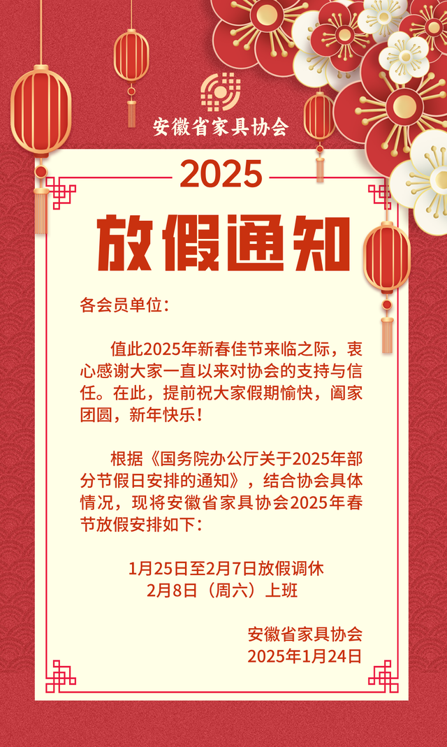 本协会登记管理机关是安徽省民政厅,接受业务主管单位业务指导和社团登记管理机关的监督管理,本协会承认中国家具协会章程,接受中国家协的业务指导,并真诚地与全国各省市家具界同仁携手,共创美好明天。