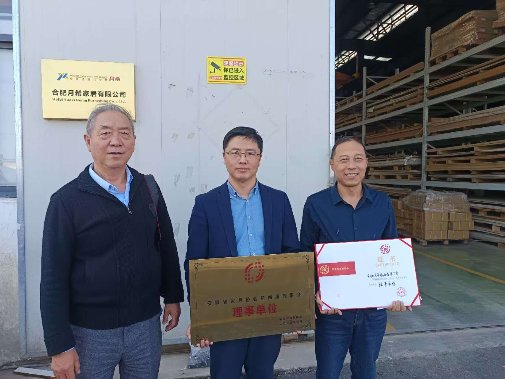 11 月 5 日下午,协会走访新入会理事单位合肥月希家居有限公司。李厂长带领秘书处参观工厂介绍标准化生产线。董事长柏元介绍公司并分享行业展望,展现积极发展愿景和敏锐洞察。