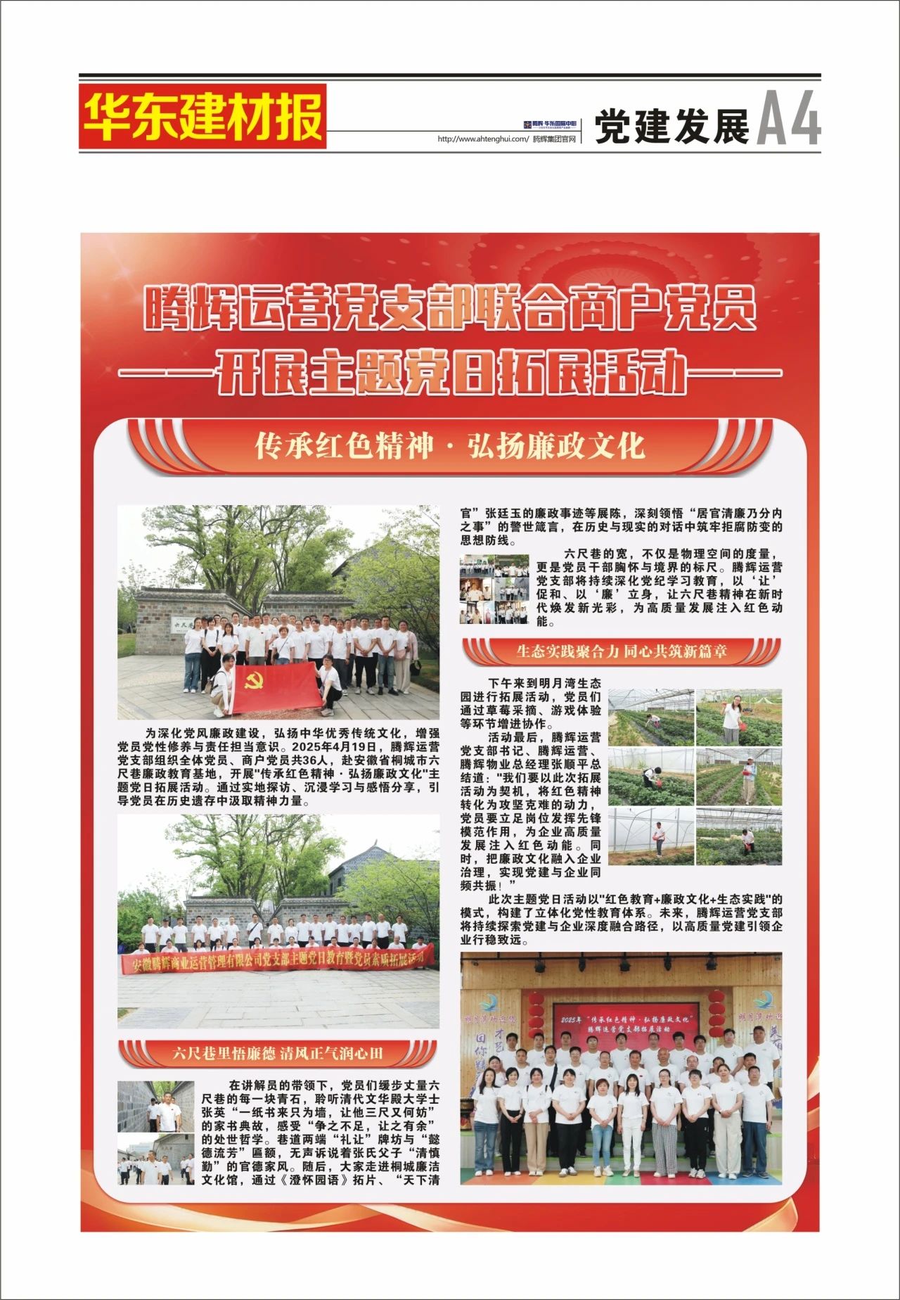 安徽省家具协会副理事长单位,腾辉运营管理有限公司党支部定期开展主题党日、实地研学、志愿服务等活动,强化党员先锋模仿作用,提升团队凝聚力,践行社会责任。腾辉党支部以实际公益行动诠释责任与担当,传递党组织的关怀与温暖。